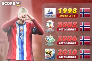 据媒体统计,挪威欧洲世预赛7战全胜,打进33球仅丢4球,挪威已基本锁定世界杯名额,他们上一次参赛还要追溯到1998年世界杯。