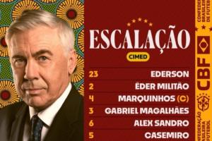 巴西首发:23-埃德松、2-米利唐、4-马尔基尼奥斯、3-加布里埃尔、6-桑德罗、5-卡塞米罗、8-吉马良斯、20-埃斯特旺、21-库尼亚、10-罗德里戈、7-维尼修斯